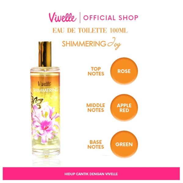 – Vivelle Shimmering Joy/Gold: Aroma jeruk segar, bunga mawar dan apel merah, terinspirasi parfum My Burberry. Wangi agak segar.